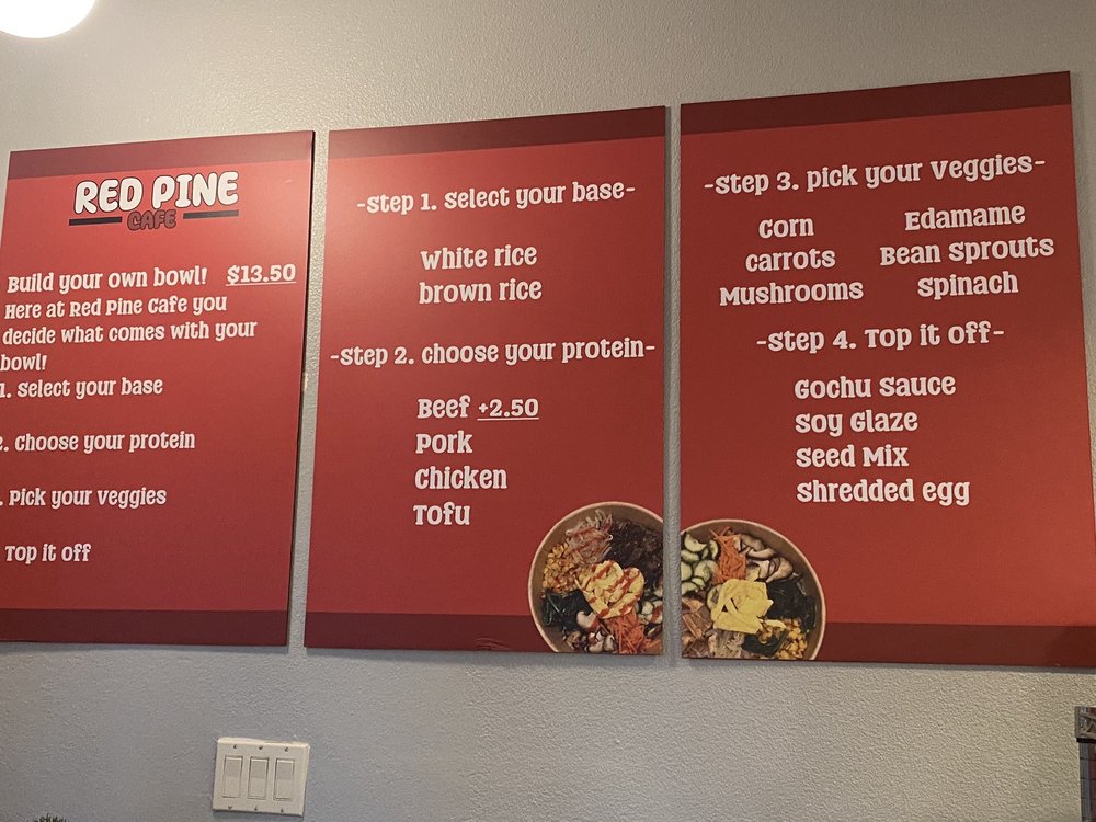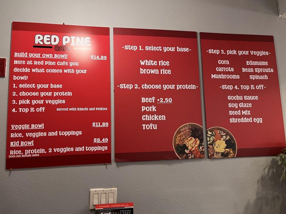 Introducing the menu at Red Pine Cafe, a hidden gem in Temecula offering Asian fusion cuisine. The build-your-own bowl option allows you to customize your meal with various proteins, veggies, and toppings. Customers rave about the tender and flavorful steak, delicious homemade kimchi, and pickles. The menu also features refreshing drinks like Thai tea and Vietnamese iced coffee. Offering delivery, takeout, and outdoor seating, Red Pine Cafe provides a welcoming environment for a delicious dining experience. Don't miss out on this local favorite for a taste of healthy and tasty eats.
